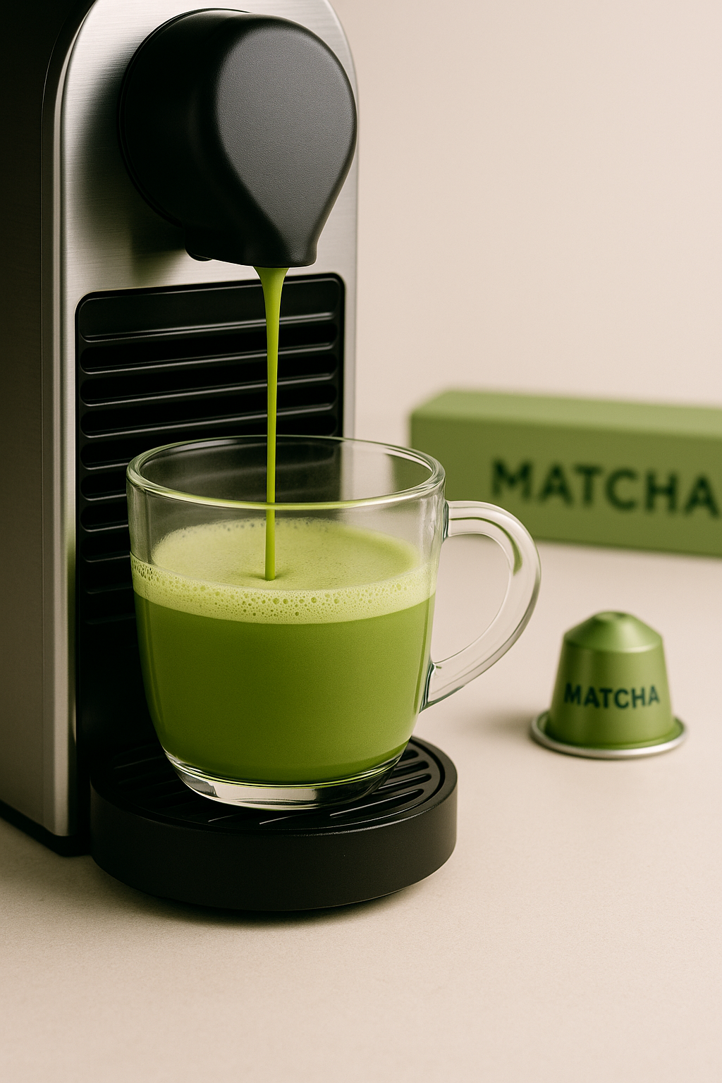 Erlebe mit der neuen Nespresso Match Kapsel eine unvergleichliche Verbindung von Tradition und Innovation. Inspiriert vom feinen Geschmack des japanischen Matcha, vereint diese Sorte die Cremigkeit eines samtigen Espressos mit der belebenden Frische von grünem Tee.