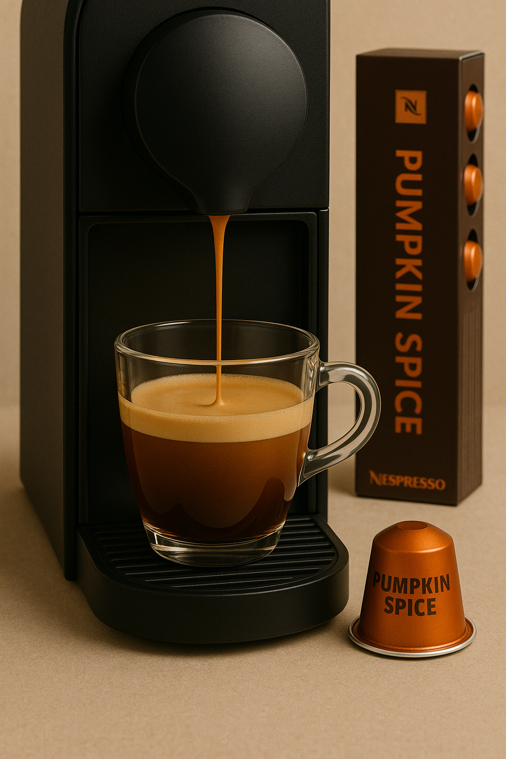 Die limitierte Edition Nespresso Pumpkin Spice sorgt für herbstlichen Genuss zu jeder Jahreszeit. Der würzig-süße Geschmack von Kürbis, Zimt und Muskat verschmilzt mit intensivem Espresso zu einem warmen, einladenden Aroma, das perfekt zu gemütlichen Momenten passt.